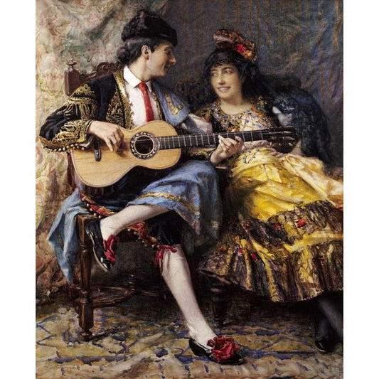 A Spanish Singer and His Lady Black Modern Wood Framed Art Print by Burrington, Arthur Alfred