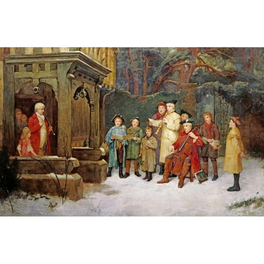 The Carol Singers Black Modern Wood Framed Art Print by Spittle, William M.