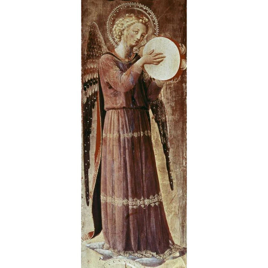 Angel With Tambourine Black Modern Wood Framed Art Print by Angelico, Fra