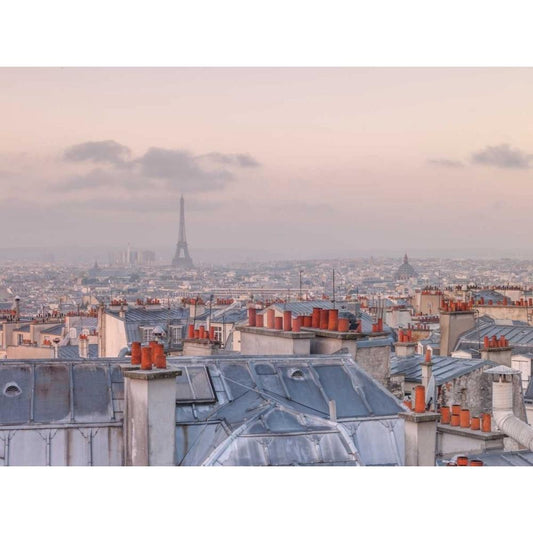 View of Eiffel tower from a window of flat, Paris, France Black Modern Wood Framed Art Print by Frank, Assaf