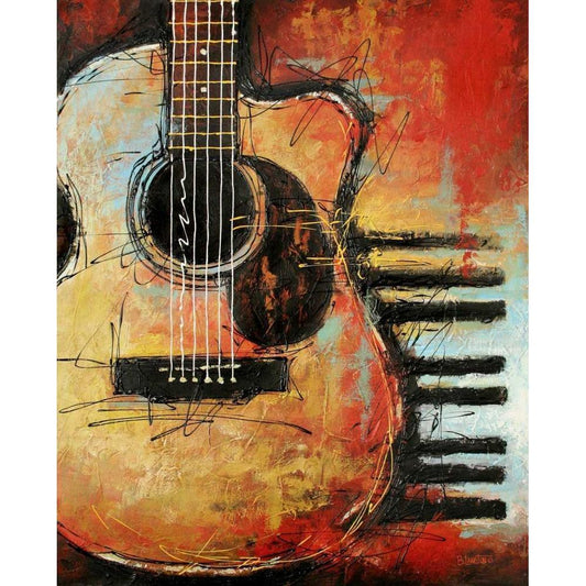 Guitar Elements Black Modern Wood Framed Art Print by Langton, Bruce