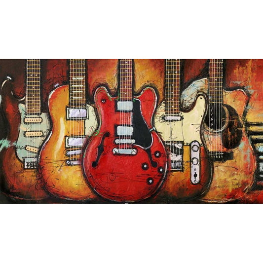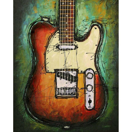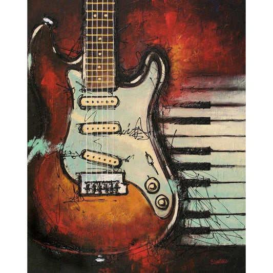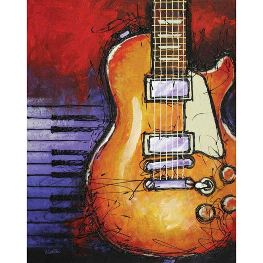 Guitar Collage Black Modern Wood Framed Art Print by Langton, Bruce