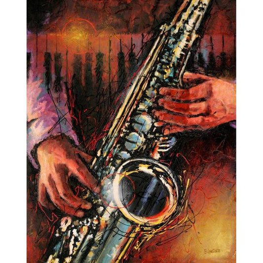 Blues Sax Black Modern Wood Framed Art Print by Langton, Bruce