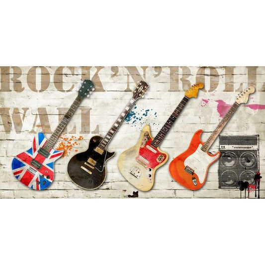 Rock n Roll Wall Black Modern Wood Framed Art Print by Hill, Steven