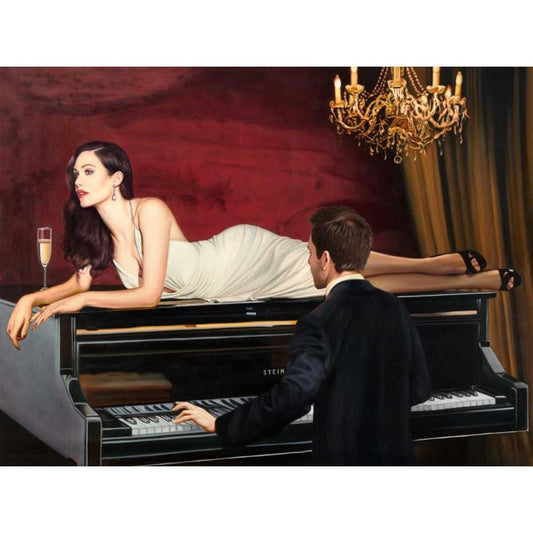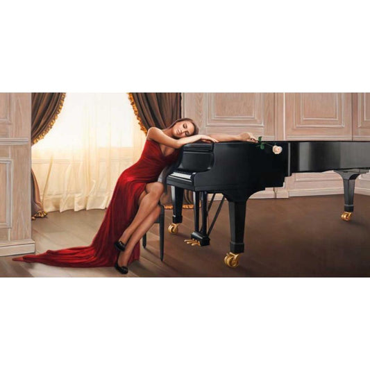 White Piano Lady Black Modern Wood Framed Art Print by Sonya, Duval