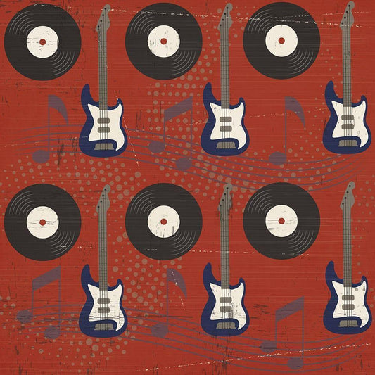 Rock and Roll Americana Pattern I Black Modern Wood Framed Art Print by ND Art