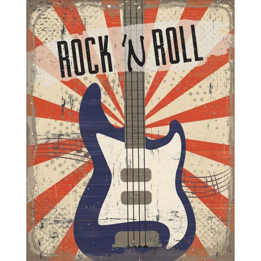 Rock n Roll Black Modern Wood Framed Art Print by ND Art and Design
