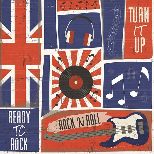 Rock and Roll Americana Pattern IV Black Modern Wood Framed Art Print by ND Art
