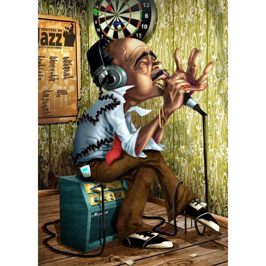 Barman Jam Session Black Modern Wood Framed Art Print by Alvez, A. - Perez, A.