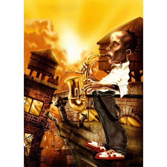 The Saxophonist -1 Black Modern Wood Framed Art Print by Alvez, A. - Perez, A.