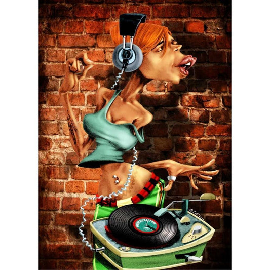 DJ Love Black Modern Wood Framed Art Print by Alvez, A. - Perez, A.