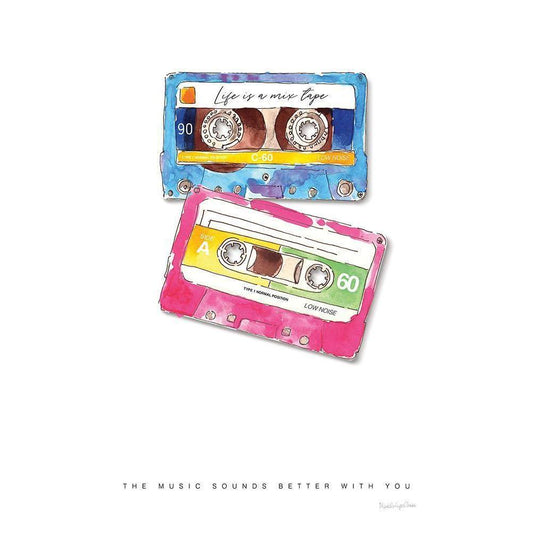 Mixtape Love Black Modern Wood Framed Art Print by Charro, Mercedes Lopez
