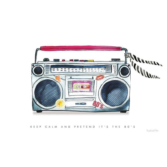 Boombox Love Black Modern Wood Framed Art Print by Charro, Mercedes Lopez