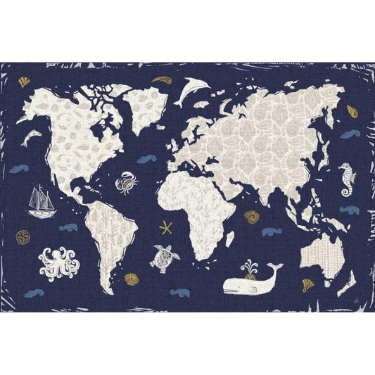 Beach Glam II Navy Black Modern Wood Framed Art Print by Charro, Mercedes Lopez