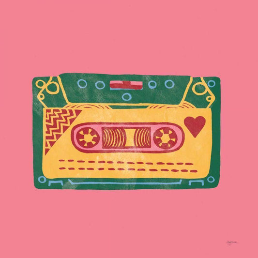 Retro Cassette No Words Dark Black Modern Wood Framed Art Print by Urban, Mary