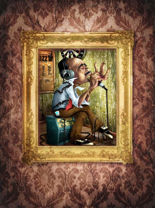 Barman Jam Session White Modern Wood Framed Art Print with Double Matting by Alvez, A. - Perez, A.