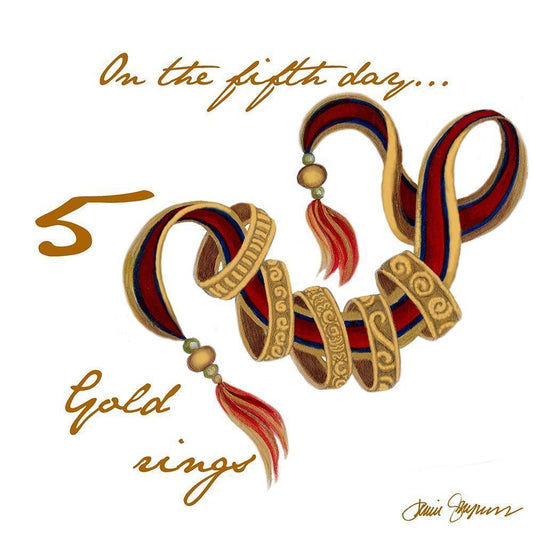 Five Golden Rings Black Modern Wood Framed Art Print by Gaynor, Janice