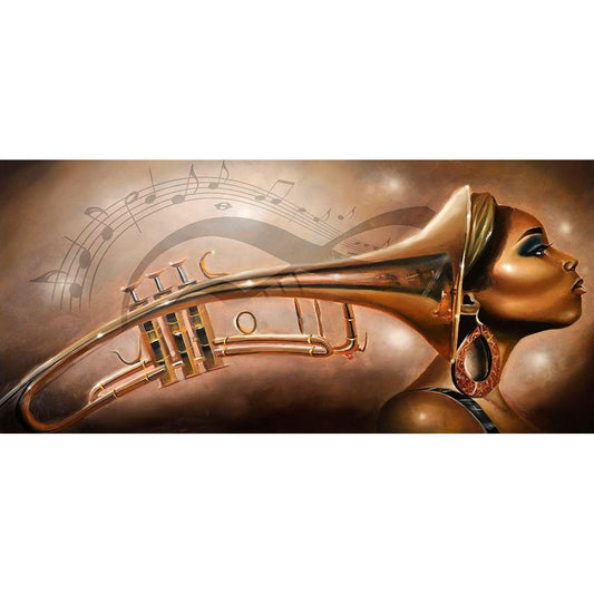 Trumpet Solo Black Modern Wood Framed Art Print by Stewart, Monica
