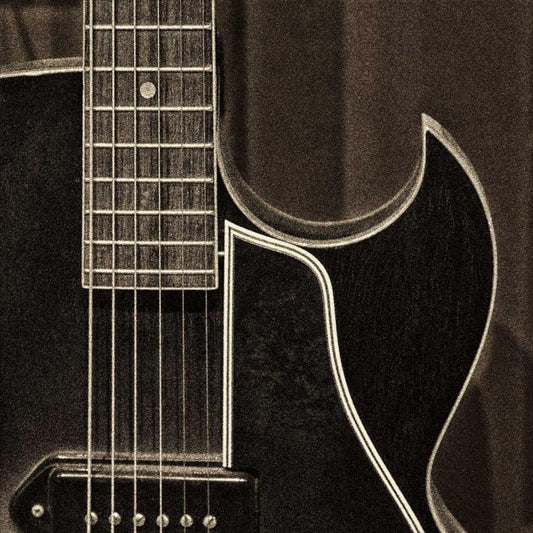 Guitar Vibrations Black Modern Wood Framed Art Print by Stelfox, Norm