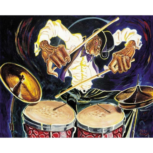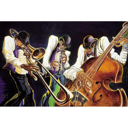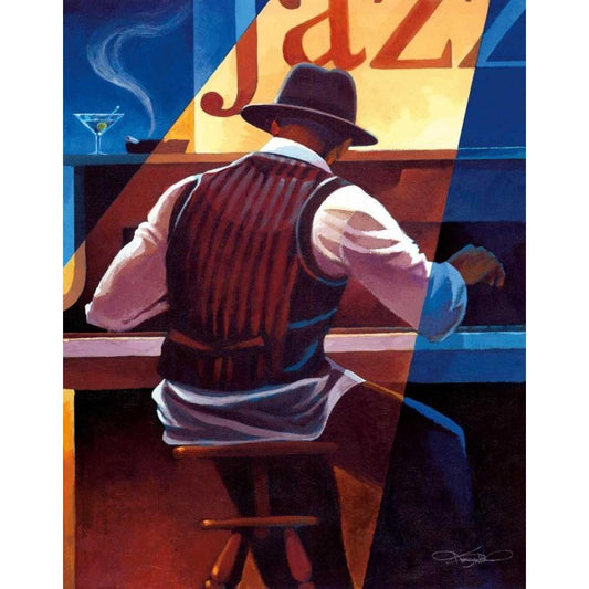 Jamming Black Modern Wood Framed Art Print by Johnson, Steven
