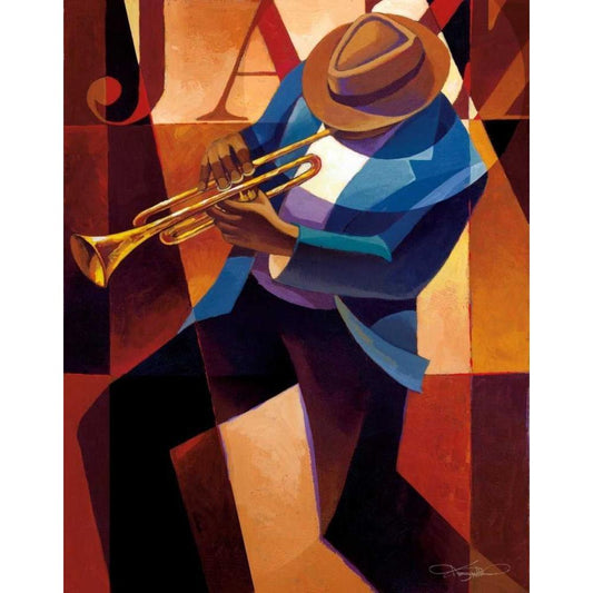 Trumpet Vibrations Black Modern Wood Framed Art Print by Stelfox, Norm