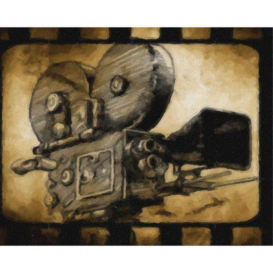 MOVIE CAMERA Black Modern Wood Framed Art Print by Greene, Taylor