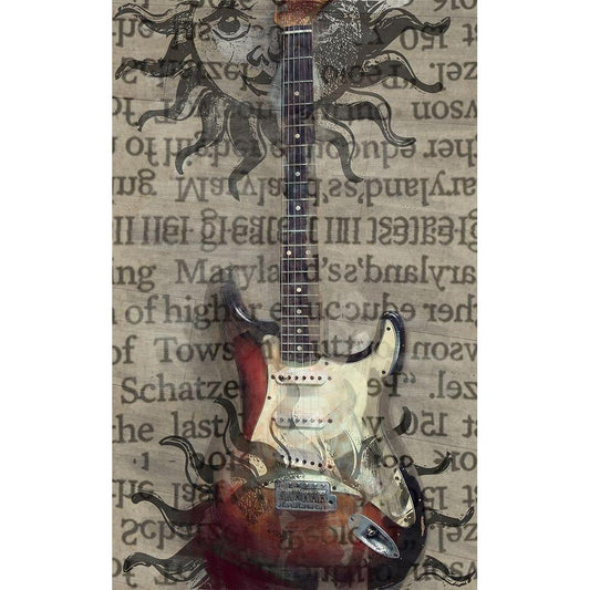 Guitar Lights Black Modern Wood Framed Art Print by Butcher, Sarah