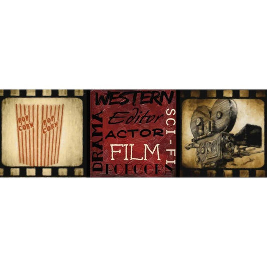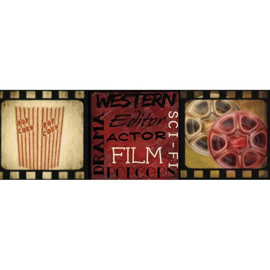 POPCORN AND FILM REEL Black Modern Wood Framed Art Print by Greene, Taylor