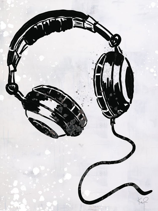 Headphones Love White Modern Wood Framed Art Print with Double Matting by Charro, Mercedes Lopez