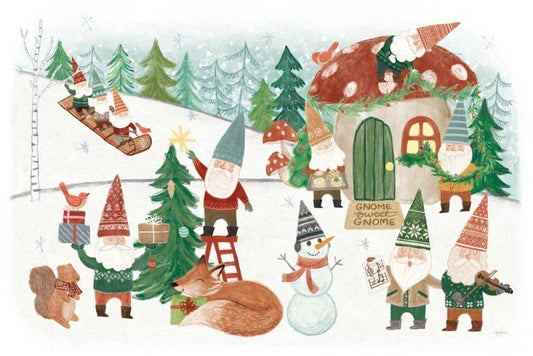 Woodland Gnomes V White Modern Wood Framed Art Print with Double Matting by Urban, Mary
