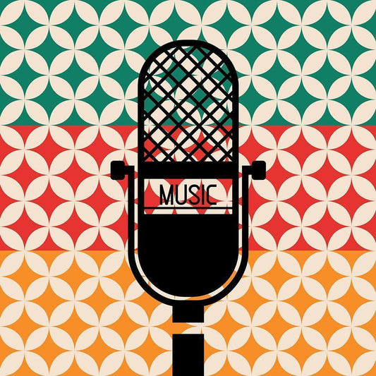 Microphone Music Retro Black Modern Wood Framed Art Print by Rodriquez Jr, Enrique