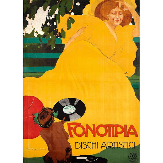 Fonotipia Black Modern Wood Framed Art Print by Vintage Apple Collection