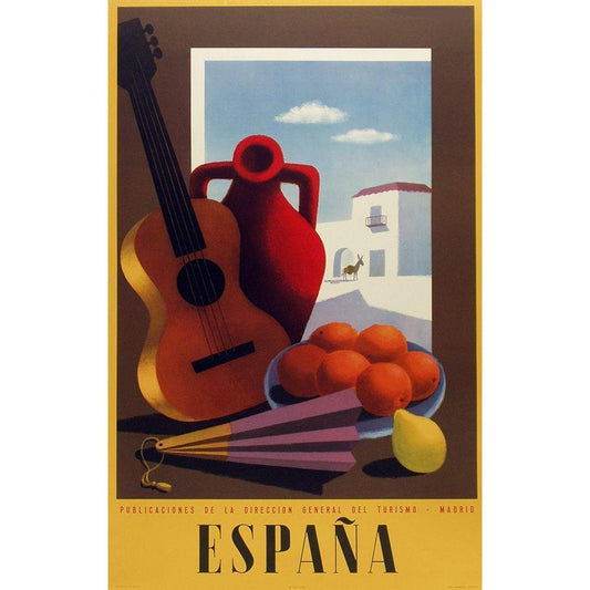 Espana Black Modern Wood Framed Art Print by Vintage Apple Collection