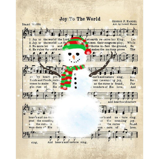Snowman Conducts Joy To The World Black Modern Wood Framed Art Print by Lavoie, Tina