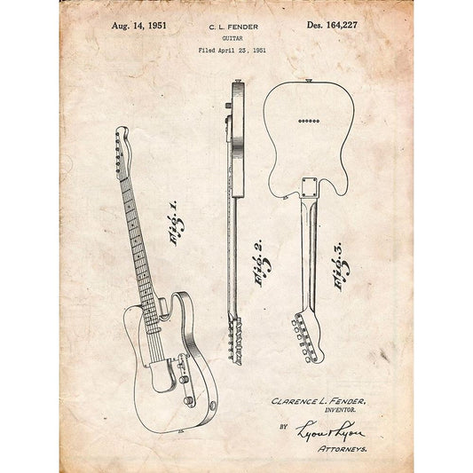 PP121- Vintage Parchment Fender Broadcaster Electric Guitar Patent Poster Black Modern Wood Framed Art Print by Borders, ColeRegular price From $29.99 USDRegular priceUnit price per-