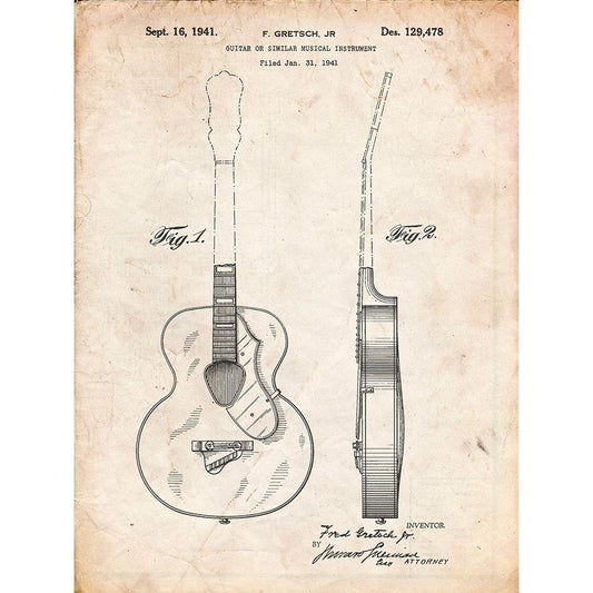 PP138- Vintage Parchment Gretsch 6022 Rancher Guitar Patent Poster Black Modern Wood Framed Art Print by Borders, ColeRegular price From $29.99 USDRegular priceUnit price per-
