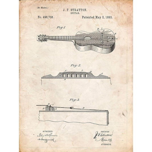PP139- Vintage Parchment Stratton And Son Acoustic Guitar Patent Poster Black Modern Wood Framed Art Print by Borders, ColeRegular price From $29.99 USDRegular priceUnit price per-
