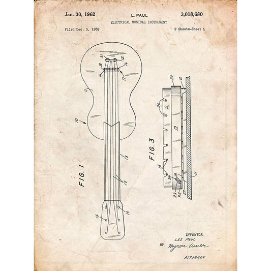 PP140- Vintage Parchment Gibson Les Paul Guitar Patent Poster Black Modern Wood Framed Art Print by Borders, ColeRegular price From $29.99 USDRegular priceUnit price per-