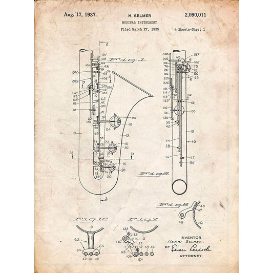 PP156- Vintage Parchment Selmer 1937 Saxophone Poster Black Modern Wood Framed Art Print by Borders, ColeRegular price From $29.99 USDRegular priceUnit price per-