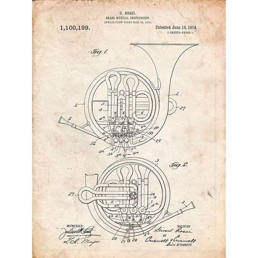 PP188- Vintage Parchment French Horn 1914 Patent Poster Black Modern Wood Framed Art Print by Borders, ColeRegular price From $29.99 USDRegular priceUnit price per-