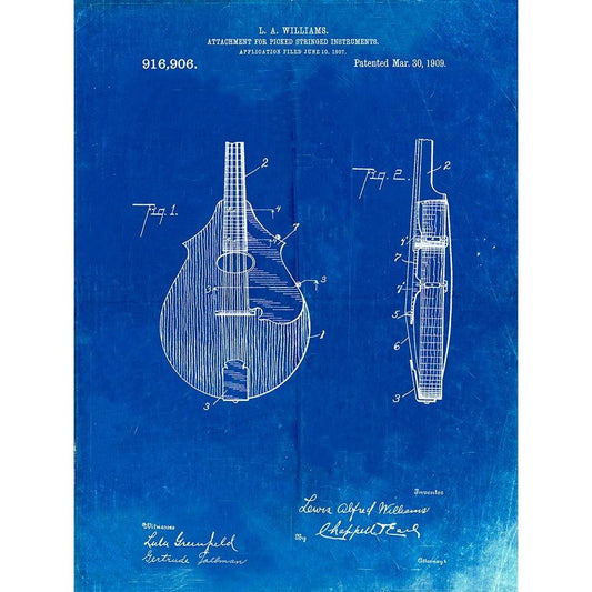 PP715-Faded Blueprint Banjo Mandolin Patent Poster Black Modern Wood Framed Art Print by Borders, ColeRegular price From $29.99 USDRegular priceUnit price per-