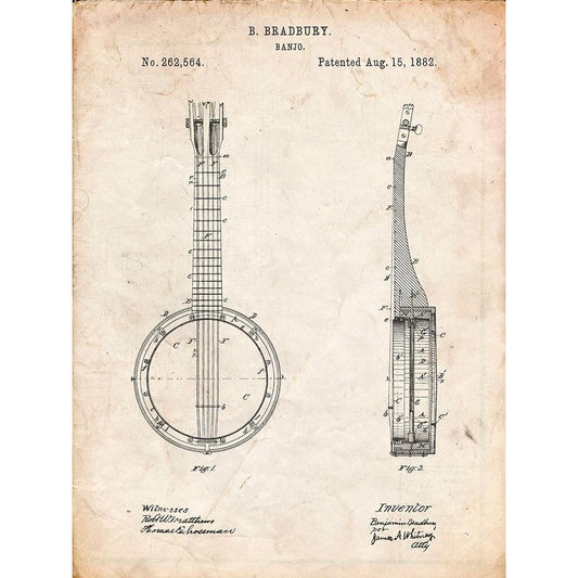 PP715-Vintage Parchment Banjo Mandolin Patent Poster Black Modern Wood Framed Art Print by Borders, ColeRegular price From $29.99 USDRegular priceUnit price per-