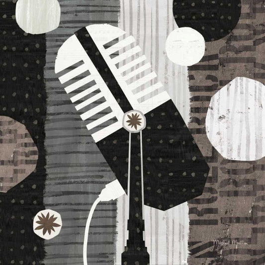 Rock N Roll Mic Neutral White Modern Wood Framed Art Print with Double Matting by Mullan, Michael