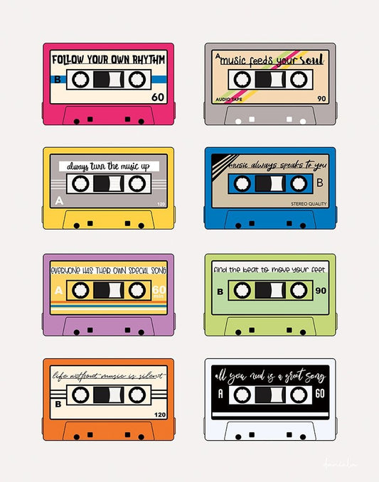 Cassette Sketch White Modern Wood Framed Art Print with Double Matting by Tava, Alexandria