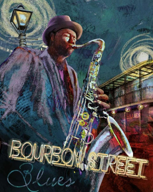 Bourbon St. Blues White Modern Wood Framed Art Print with Double Matting by Knutsen, Conrad