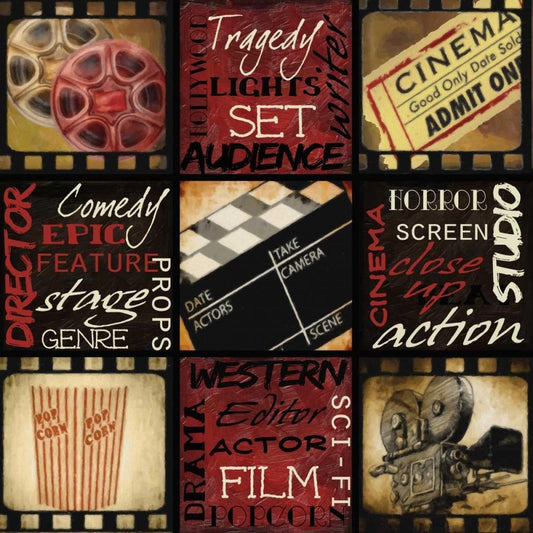 LIGHTS CAMERA ACTION_REELS White Modern Wood Framed Art Print with Double Matting by Greene, Taylor