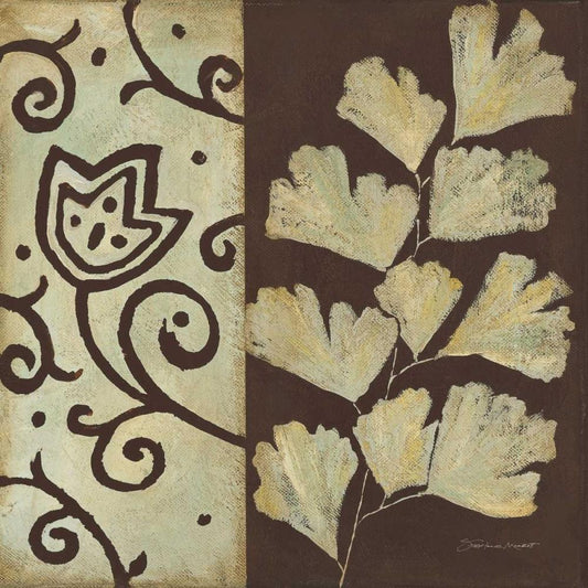 Brown Leaf II White Modern Wood Framed Art Print with Double Matting by Marrott, Stephanie
