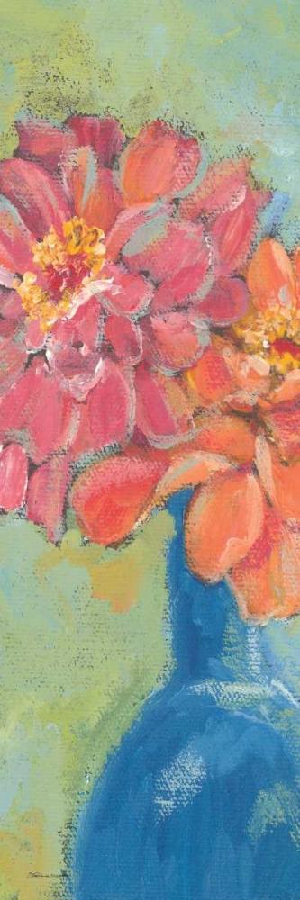 Gerbers in A Blue Vase White Modern Wood Framed Art Print with Double Matting by Marrott, Stephanie