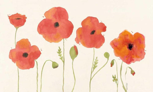 Poppies White Modern Wood Framed Art Print with Double Matting by Marrott, Stephanie