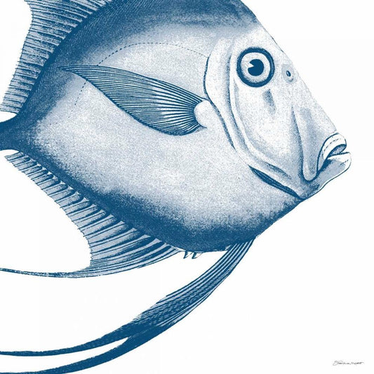 Blue Fish White Modern Wood Framed Art Print with Double Matting by Marrott, Stephanie
